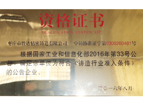 您所在的位置:山東鑄造廠 - 關(guān)于勝達 - 榮譽資質(zhì)